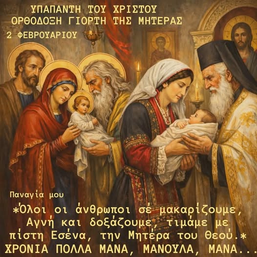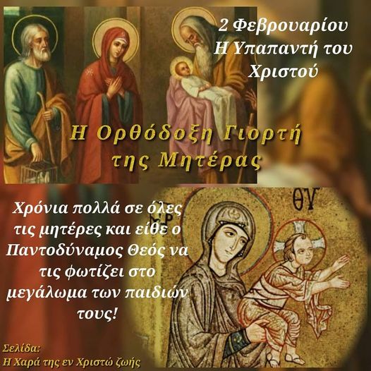 ΗΜΕΡΑ ΤΗΣ ΥΠΑΠΑΝΤΗΣ, ΗΜΕΡΑ ΤΗΣ ΜΗΤΕΡΑΣ! Η μέρα της Υπαπαντής, μέρα της μάνας, γιορτή της μάνας…Δεν έχει πανηγυρισμούς και χρόνια πολλά και φιλιά και καρτούλες και