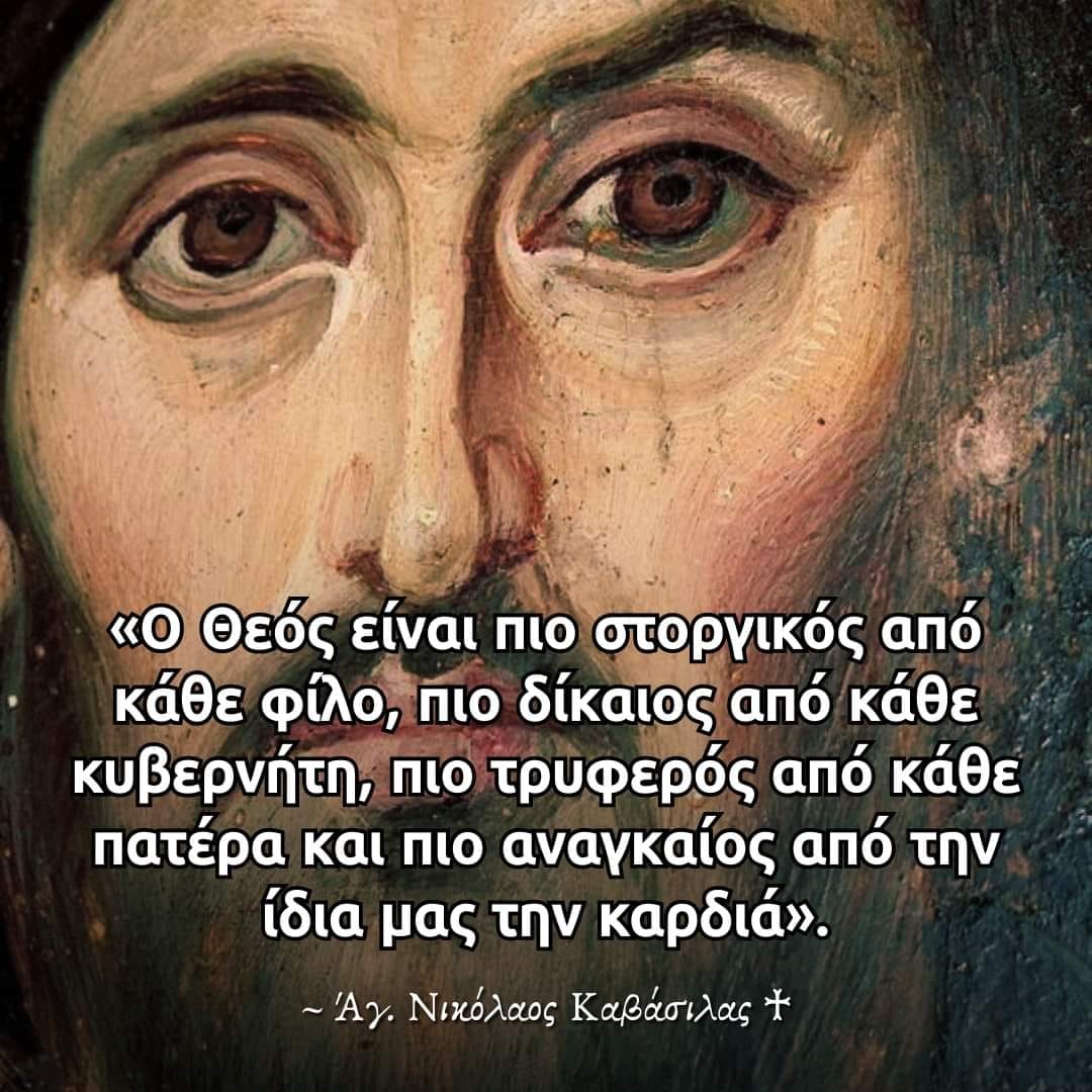 «Ο Θεός είναι πιο στοργικός από κάθε φίλο, πιο δίκαιος από κάθε κυβερνήτη, πιο τρυφερός από κάθε πατέρα και πιο αναγκαίος από την ίδια μας την καρδιά». Άγ. Νικόλαος Καβάσιλας