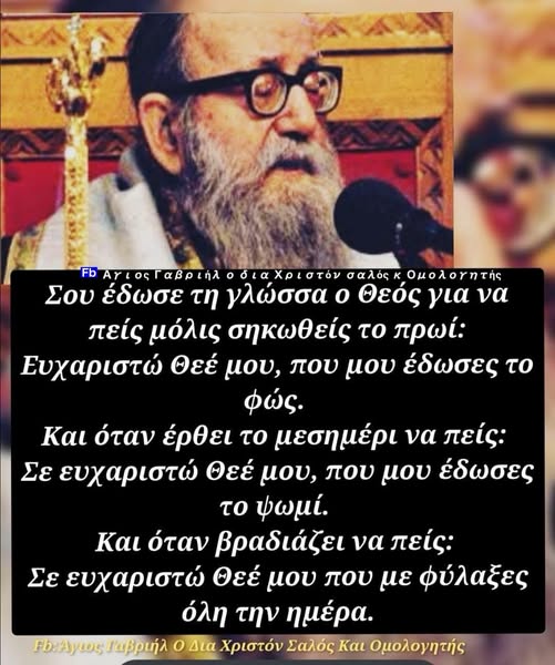 Σου έδωσε τη γλώσσα ο Θεός για να πείς μόλις σηκωθείς το πρωί: Ευχαριστώ Θεέ μου, που μου έδωσες το φώς.Και όταν έρθει το μεσημέρι να πείς:Σε ευχαριστώ Θεέ μου,…