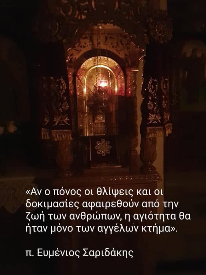 «Αν ο πόνος οι θλίψεις και οι δοκιμασίες αφαιρεθούν από την ζωή των ανθρώπων, η αγιότητα θα ήταν μόνο των αγγέλων κτήμα». Άγιος Ευμένιος Σαριδάκης