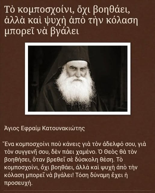 Ένα κομποσχοίνι ποὺ κάνεις γιὰ τὸν ἀδελφό σου, γιὰ τὸν συγγενῆ σου, δὲν πάει χαμένο. Ὁ Θεὸς θὰ τὸν βοηθήσει, ὅταν