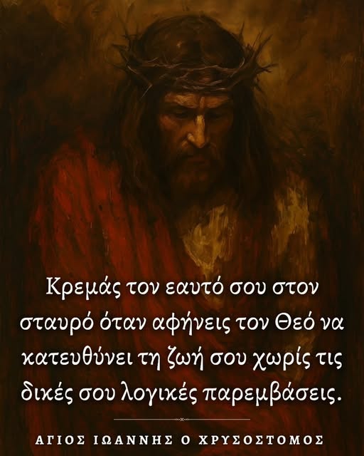 “Κρεμάς τον εαυτό σου στον σταυρό όταν αφήνεις τον Θεό να κατευθύνει τη ζωή σου χωρίς τις δικές σου λογικές παρεμβάσεις.” ΑΓΙΟΣ ΙΩΑΝΝΗΣ Ο ΧΡΥΣΟΣΤΟΜΟΣ