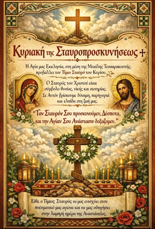 ΤΟ ΕΥΑΓΓΕΛΙΚΟ ΑΝΑΓΝΩΣΜΑ (ΚΕΙΜΕΝΟ ΚΑΙ ΑΠΟΔΟΣΗ) ΚΥΡΙΑΚΗ ΤΗΣ ΣΤΑΥΡΟΠΡΟΣΚΥΝΗΣΕΩΣ (Γ’ ΝΗΣΤΕΙΩΝ) -15/3/2026- ~ΩΡΑ 6.30 π.μ. ~ΜΕΣΟΝΥΚΤΙΚΟ, ΟΡΘΡΟΣ, ΛΙΤΑΝΕΥΣΗ ΤΟΥ ΤΙΜΙΟΥ ΞΥΛΟΥ (ΚΕΙΜΗΛΙΟ ΤΟΥ ΝΑΟΥ ΜΑΣ), ΔΙΑΜΟΙΡΑΣΗ ΑΝΘΕΩΝ ΣΤΑΥΡΟΥ, ΘΕΙΑ ΛΕΙΤΟΥΡΓΙΑ…