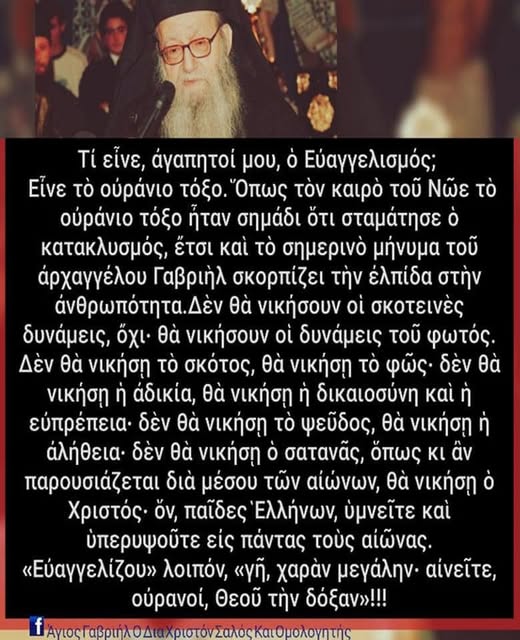 ΑΕΙΜΝ. ΜΗΤΡΟΠΟΛΙΤΗΣ ΦΛΩΡΙΝΗΣ ΑΥΓΟΥΣΤΙΝΟΣ ΓΙΑ ΤΟΝ ΕΥΑΓΓΕΛΙΣΜΟ ΤΗΣ ΘΕΟΤΟΚΟΥ ” Τί είναι, αγαπητοί μου, ὁ Εὐαγγελισμός;Εἶναι