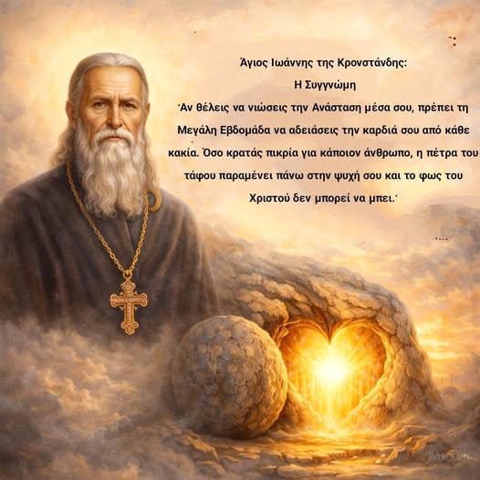 Η Συγγνώμη Αν θέλεις να νιώσεις την Ανάσταση μέσα σου, πρέπει τη Μεγάλη Εβδομάδα να αδειάσεις την καρδιά σου από κάθε κακία. Όσο κρατάς πικρία για κάποιον άνθρωπο, η πέτρα…