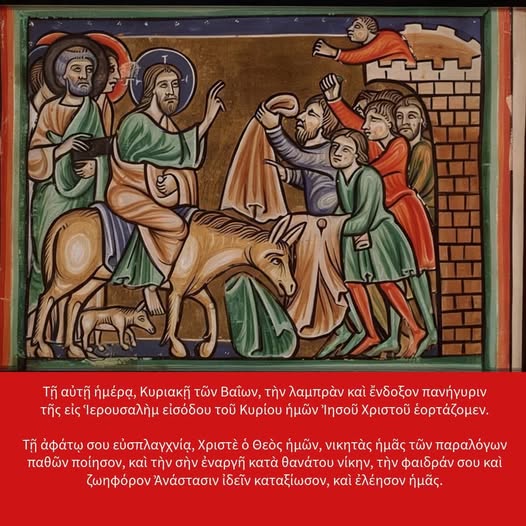 ΤΟ ΕΥΑΓΓΕΛΙΚΟ ΑΝΑΓΝΩΣΜΑ (ΠΡΩΤΟΤΥΠΟ ΚΑΙ ΑΠΟΔΟΣΗ ΚΥΡΙΑΚΗ ΤΩΝ ΒΑΪΩΝ (5/4/2026) ~ΔΕΣΠΟΤΙΚΗ ΕΟΡΤΗ ΤΗΣ ΕΙΣΟΔΟΥ ΤΟΥ ΚΥΡΙΟΥ ΣΤΑ ΙΕΡΟΣΟΛΥΜΑ. ΩΡΑ 6.45 π.μ. ~ΜΕΣΟΝΥΚΤΙΚΟ, ΕΟΡΤΙΟΣ ΟΡΘΡΟΣ, ΕΥΛΟΓΙΑ ΚΑΙ ΔΙΑΜΟΙΡΑΣΗ ΤΩΝ ΒΑΊΏΝ, ΠΑΝΗΓΥΡΙΚΗ…
