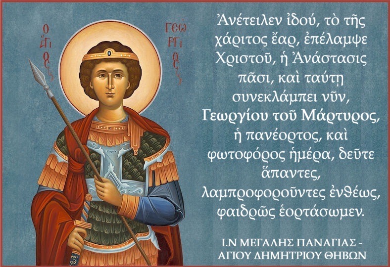 «Στο πρόσωπο του Αγίου Γεωργίου η Εκκλησία τιμά την πιστότητα στον Χριστό, την ανδρεία της ομολογίας και τη δύναμη της μαρτυρίας.»