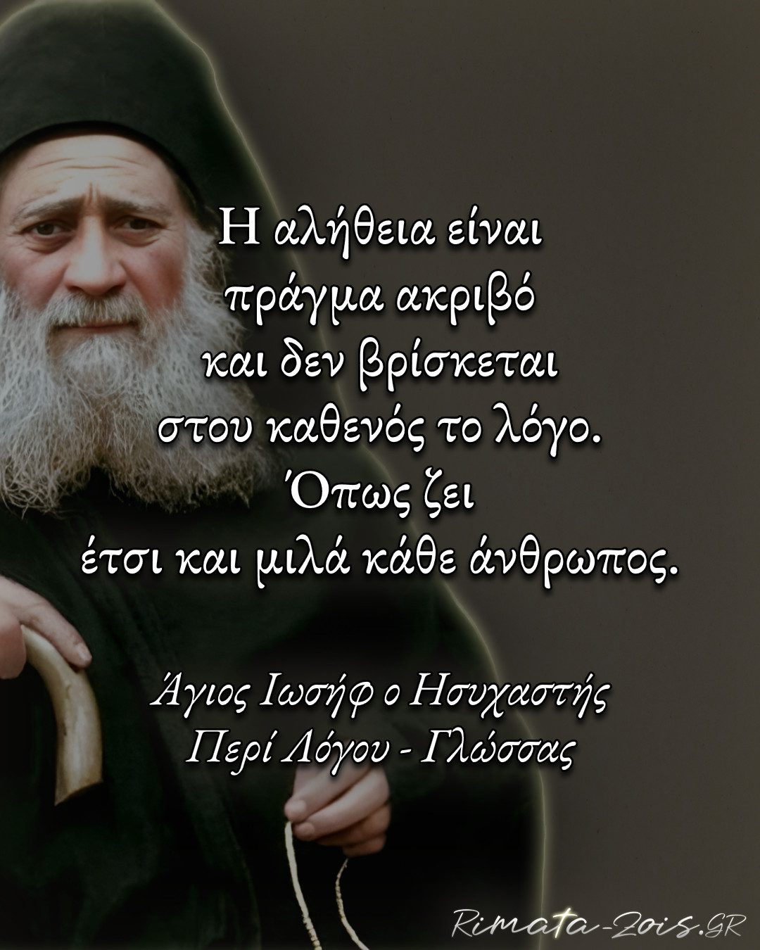 “Η αλήθεια είναι πράγμα ακριβό και δεν βρίσκεται στου καθενός το λόγο. Όπως ζει έτσι και μιλά κάθε άνθρωπος.” Άγιος Ιωσήφ ο Ησυχαστής