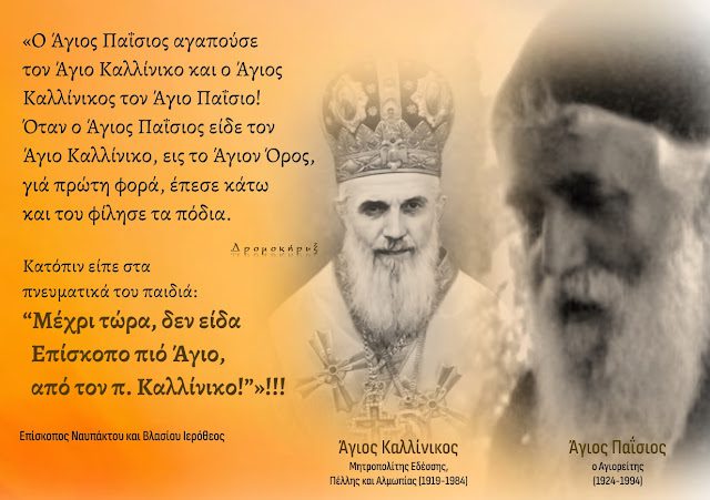 Ο Άγιος Παΐσιος αγαπούσε τον Άγιο Καλλίνικο και ο Άγιος Καλλίνικος τον Άγιο Παΐσιο!Όταν ο Άγιος Παΐσιος είδε τον Άγιο Καλλίνικο, εις το Άγιον Όρος, γιά πρώτη φορά, έπεσε κάτω…