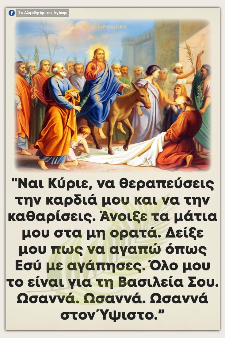 Η ΙΑΧΗ “ΩΣΑΝΝΑ” ΚΑΤΑ ΤΗΝ ΕΙΣΟΔΟ ΤΟΥ ΚΥΡΙΟΥ ΣΤΑ ΙΕΡΟΣΟΛΥΜΑ! Το «Ωσαννά» είναι εβραϊκή θρησκευτική λέξη (από το hôšîʿâ-nā) που σημαίνει «σώσε μας τώρα» ή «σώσε μας, σε παρακαλούμε».Στον Χριστιανισμό…