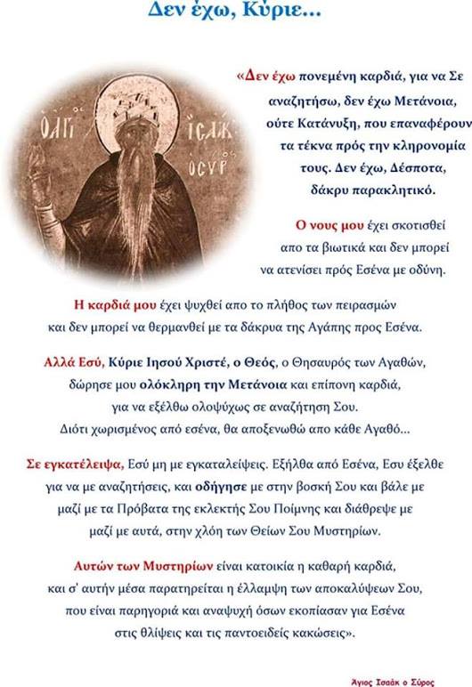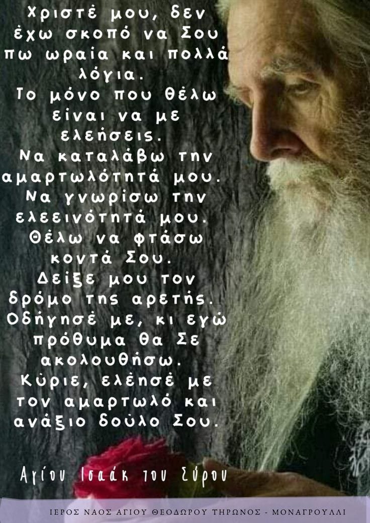 Ὁ ἀγώνας εἶναι σκληρός – Ἅγιος Ἰσαάκ ὁ Σῦρος Χρειάζεται μεγάλος ἀγώνας, γιατί τά πάθη ἔχουν μεγάλη δύναμη. Μέ τή χάρη ὅμως τοῦ Θεοῦ θά νικήσει ὁ γενναῖος ἀθλητής πού…