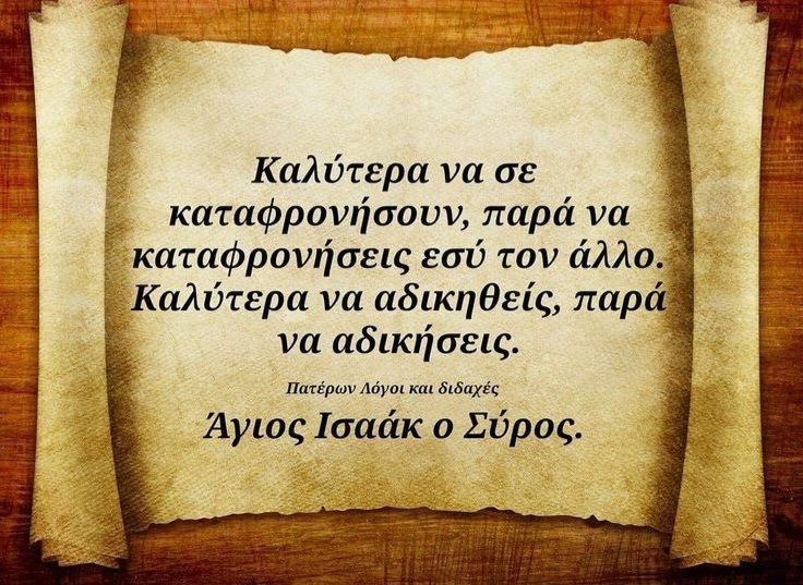 Καλύτερα να σε καταφρονήσουν, παρά να καταφρονήσεις εσύ τον άλλο.Καλύτερα να αδικηθείς, παρά να αδικήσεις.Άγιος Ισαάκ ο Σύρος.