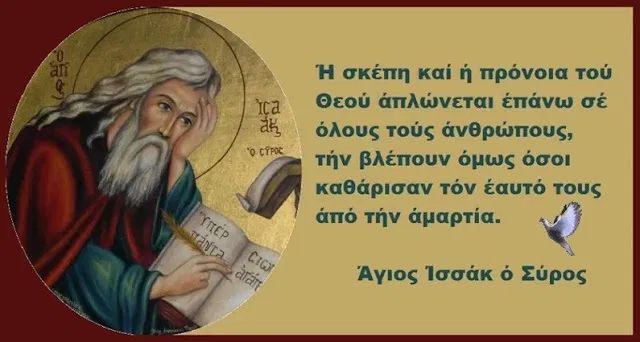 Ἡ σκέπη καί ή πρόνοια τού Θεού άπλώνεται επάνω σε όλους τούς άνθρώπους, τήν βλέπουν όμως όσοι καθάρισαν τόν έαυτό τους ἀπό τήν άμαρτία. Άγιος Ἰσσάκ ο Σύρος