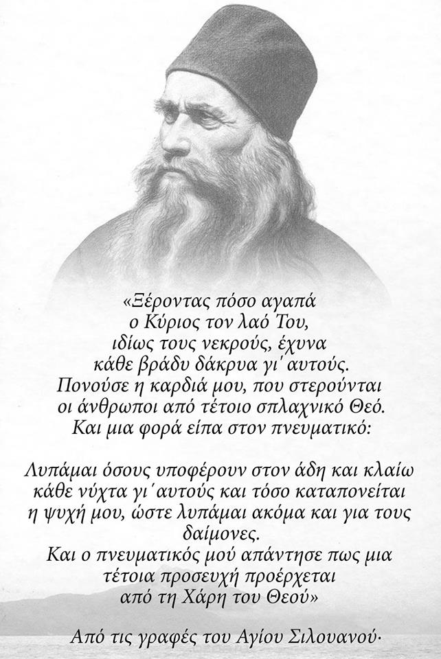 ΟΣΙΟΣ ΣΙΛΟΥΑΝΟΣ: H ΠΑΝΑΓΙΑ ΑΓΚΑΛΙΑΖΕΙ ΜΕ ΤΗΝ ΑΓΑΠΗ ΤΗΣ ΟΛΟ ΤΟΝ ΚΟΣΜΟ ΚΑΙ ΣΠΛΑΧΝΙΖΕΤΑΙ ΚΑΙ ΕΛΕΕΙ ΤΟΥΣ ΠΑΝΤΕΣ! Γράφει ο άγιος Σιλουανός ο Αθωνίτης:Πολλά θαύματα και ελέη είδα από τον…