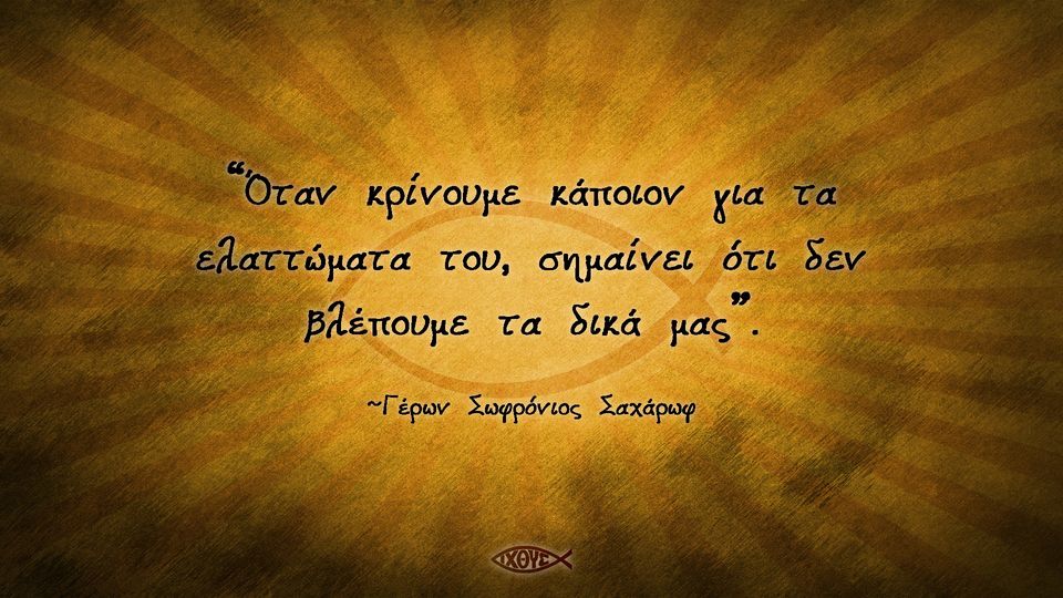“Όταν κρίνουμε κάποιον για τα ελαττώματα του, σημαίνει ότι δεν βλέπουμε τα δικά μας”Γέρων Σωφρόνιος Σαχάρωφ