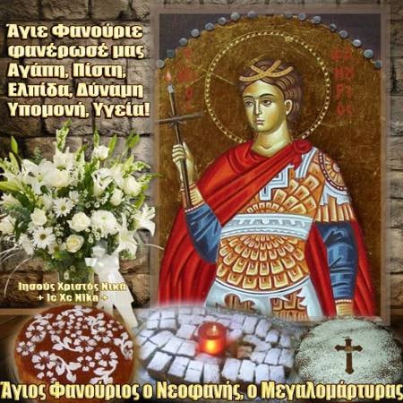 ΜΝΗΜΗ ΤΟΥ ΑΓΙΟΥ ΜΕΓΑΛΟΜΑΡΤΥΡΟΣ ΦΑΝΟΥΡΙΟΥ ΤΟΥ ΝΕΟΦΑΝΟΥΣ! Ο Άγιος Φανούριος είναι από τους πιο αγαπητούς άγιους σε όλο τον ελληνικό λαό, που κάθε χρόνο τιμά και πανηγυρίζει την μνήμη του…