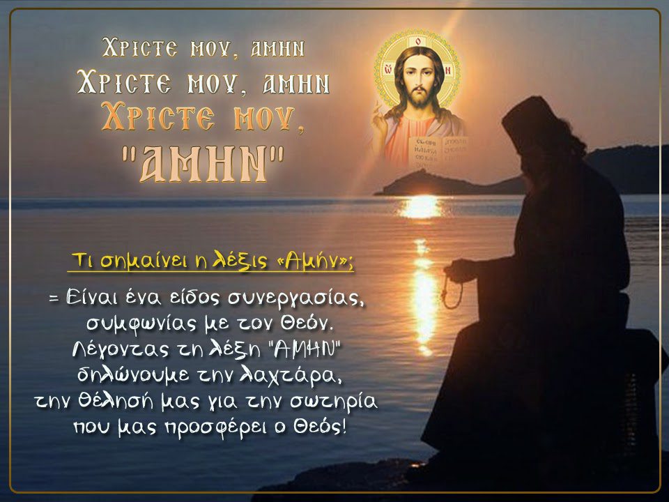 Τί σημαίνει η λέξη «Αμήν» Όλοι ξέρουμε την λέξη «Αμήν» καί συχνά την χρησιμοποιούμε στην καθημερινή μας ζωή. Πότε έτσι και πότε αλλιώς. Δεν ξέρουμε όμως την πραγματική σημασία της…