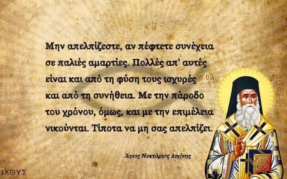 “Όλα νικιούνται, τίποτα να μην σας απελπίζει!”Άγιος Νεκτάριος