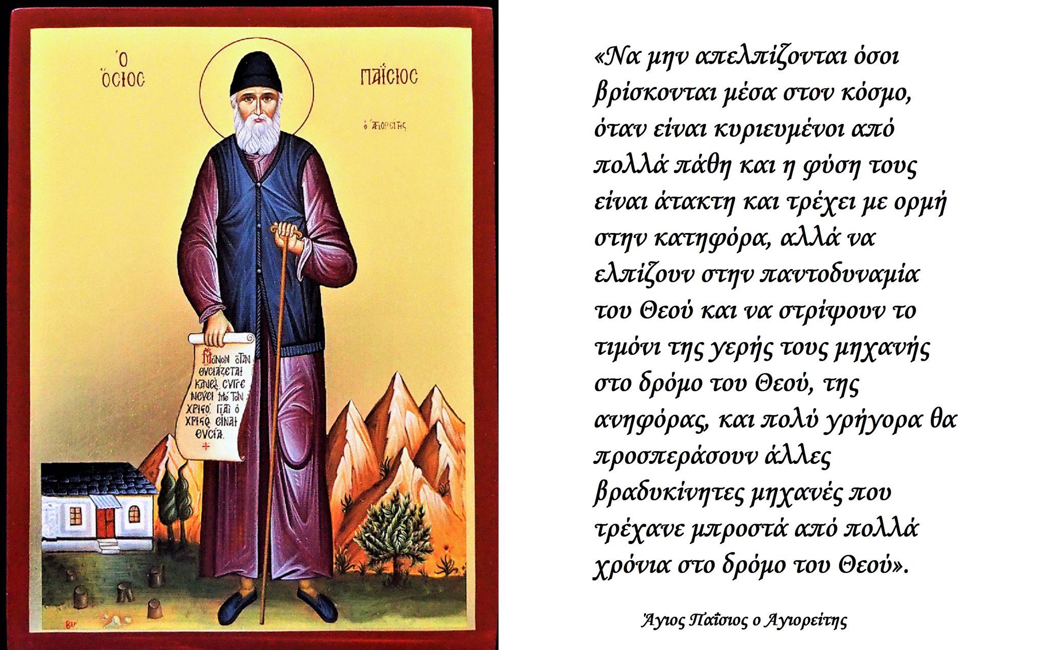 «Χόρτασα ἀπὸ τὰ γλυκύτατα νάματα τοῦ Παραδείσου καὶ δὲν τὸ πῆρα ἐπάνω μου, καὶ χόρτασα ἀπὸ τὰ δριμύτατα, τὰ πικρότατα νάματα τῆς κολάσεως (τῶν δοκιμασιών) καὶ δὲν ἀπελπίστηκα!» Όσιος Εφραίμ…