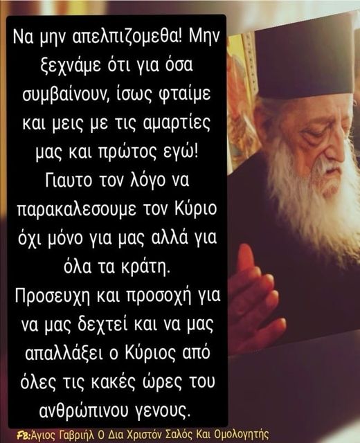 “Να μην απελπιζομεθα! Μην ξεχνάμε ότι για όσα συμβαίνουν, ίσως φταίμε και μεις με τις αμαρτίες μας και πρώτος εγώ!Γιαυτο τον λόγο να παρακαλέσουμε τον Κύριο όχι μόνο για μας…