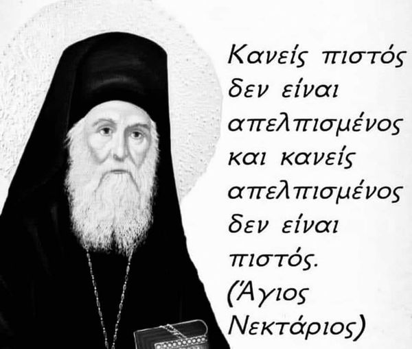 Κανείς πιστός δεν είναι απελπισμένος και κανείς απελπισμένος δεν είναι πιστός.~Άγιος Νεκτάριος