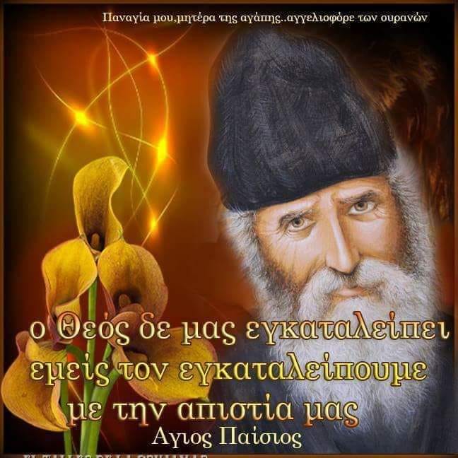 “Ο ΘΕΟΣ ΔΕΝ ΜΑΣ ΕΓΚΑΤΑΛΕΙΠΕΙ, ΕΜΕΙΣ ΤΟΝ ΕΓΚΑΤΑΛΕΙΠΟΥΜΕ ΜΕ ΤΗΝ ΑΠΙΣΤΙΑ ΜΑΣ…” ΑΓΙΟΣ ΠΑΪΣΙΟΣ Ο ΑΓΙΟΡΕΙΤΗΣ