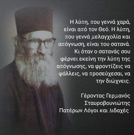 “Είναι αδύνατο να σε πιάσει απελπισία, όταν θυμηθείς ότι Βοηθός και Ενισχυτής σου, είναι ο Παντοδύναμος Θεός.” Γέροντας Γερμανός Σταυροβουνιώτης
