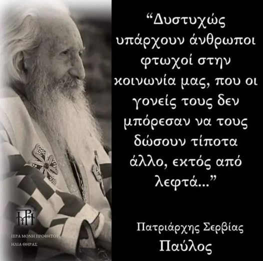 “Δυστυχώς υπάρχουν άνθρωποι φτωχοί στην κοινωνία μας, που οι γονείς τους δεν μπόρεσαν να τους δώσουν τίποτα άλλο, εκτός από λεφτά…” Πατριάρχης Σερβίας Παύλος