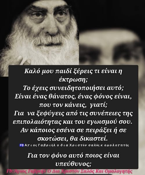 Καλό μου παιδί ξέρεις τι είναι η έκτρωση;Το έχεις συνειδητοποιήσει αυτό;Είναι ένας θάνατος, ένας φόνος είναι, που τον κάνεις, γιατί; Για να ξεφύγεις από τις συνέπειες της επιπολαιότητας και του…