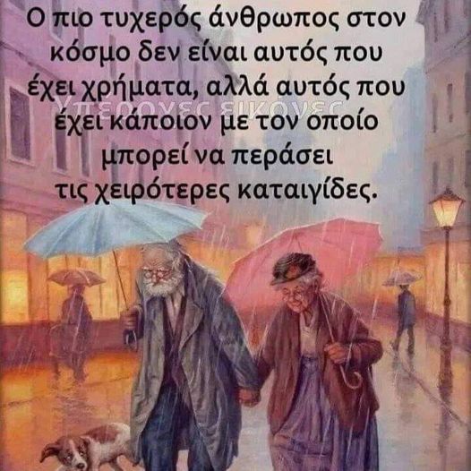 Ο πιο τυχερός άνθρωπος στον κόσμο δεν είναι αυτός που έχει χρήματα, αλλά αυτός που έχει κάποιον με τον οποίο μπορεί να περάσει τις χειρότερες καταιγίδες.