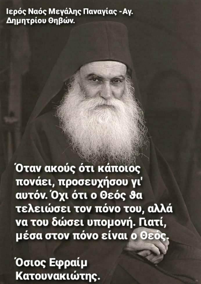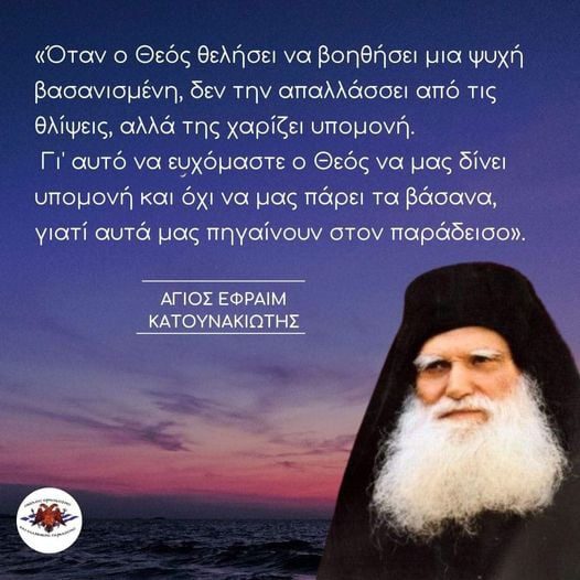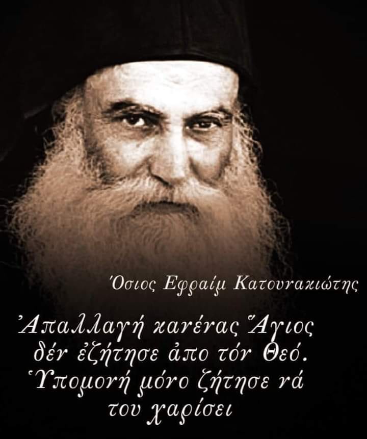 “Θα κάνεις υπομονή στα δικά σου πάθη, θα κάνεις και στα δικά μου. Έτσι θα γίνεις άγιος.”Όσιος Εφραίμ Κατουνακιώτης