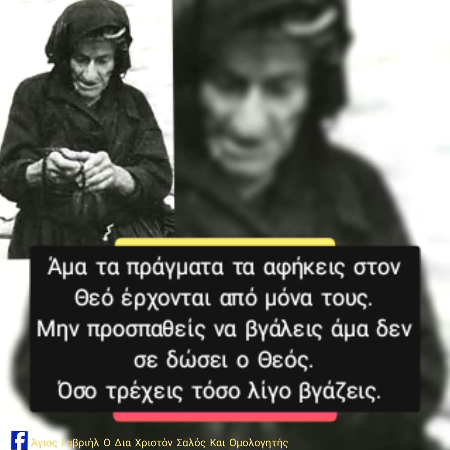 Άμα τα πράγματα τα αφήκεις στον Θεό, έρχονται μονάχα τους. Μην προσπαθείς να βγάλεις, άμα δεν σε δώσει ο Θεός. Όσο τρέχεις, τόσο λίγο βγάζεις… Ποτέ μην πεις ότι είμαι…